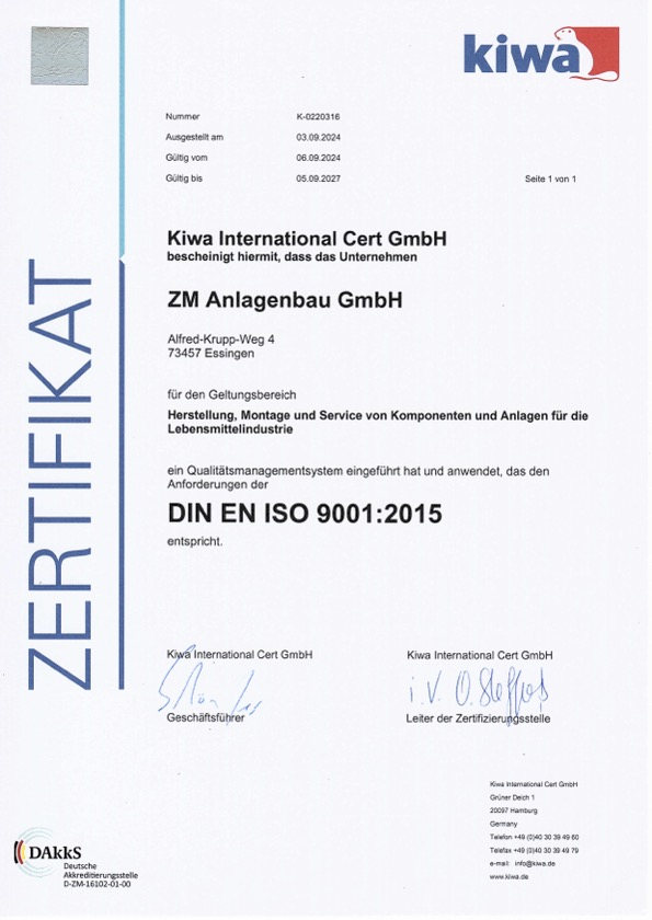 Mit der Zertifizierung unseres Qualitätsmanagements nach DIN EN ISO 9001:2008 durch die Kiwa